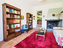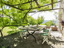 10-værelse-bondehus 280 m2 på 2 etager. Komfortabelt og rustikt indrettet: stue med åben kamin og TV. Udgang til have. Spisestue. Udgang til have. 1 værelse med 2 senge. Stue/spisestue med køkkenblok. Udgang til have, til loggia. Stue med åben kamin og TV. Udgang til have. Store køkken (4 kogeplader, ovn, opvaskemaskine, mikroovn, fryser) med spisebord. Udgang til have, pergola. Brus/bidet/WC. Overetage: 1 værelse med 2 senge. 3 dobbeltværelse. Åben mellemetage med 1 dobbeltseng. 1 værelse med 2 senge. 2 bad/bidet/WC. Gas-opvarming. Opvarme kun tilgængelig fra 01.11. til 15.04. Meget flotte udsigt over dalen og landskabet. Til benyttelse: vaskemaskine, myggenet hårtørrer. Internet (trådløs LAN [WLAN], gratis). Der er en veranda. Det har en privat pool. En vaskemaskine er tilgængelig til brug. Det har en komfur.- Aktiviteter i nærheden