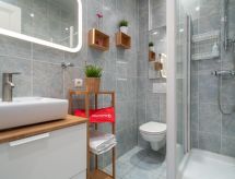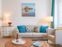 3-værelse-lejlighed 90 m2 i 1. etage. Rummelig, komfortabelt og smagfuld indrettet: stue/spisestue med TV (fladskærms TV). 1 værelse med 1 fransk seng (180 cm, længde 200 cm). 1 værelse med 1 fransk seng (160 cm, længde 200 cm). Store, åbent køkken (ovn, opvaskemaskine, 4 keramiske kogeplader, Brødrister, kedel, mikroovn, fryser, elektrisk kaffemaskine, Kapsler til kaffemasin (nespresso) ekstra). 2 brus/WC. Klimaanlæg. Til benyttelse: vaskemaskine, tørretumbler, strygejern barneseng, hårtørrer. Internet (trådløs LAN [WLAN], gratis). Parkeringsplads (overdækket), højde 190 cm. Bemærk venligst: ikke-ryger lejlighed. Brandalarm. 64122000504CB Spontane ideer opstår ofte under brusebadet. Måske bliver hendes nye roman eller sang skabt i løbet af disse ferier! Anyway, et bad er til rådighed. Der er en overdækket parkeringsplads.- Faciliteter