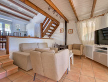 3-værelse-hus 105 m2. Meget komfortabelt og hyggeligt indrettet: stue/spisestue med sat-TV, digital TV, træovn, klimaanlæg og varmluft opvarming. Udgang til have, til terrasse, til pool. 1 værelse med 1 fransk seng (160 cm, længde 200 cm), brus/WC og dobbelt håndvask (private) klimaanlæg og varmluft opvarming. Udgang til terrasse, til pool. 1 værelse med 1 fransk seng (160 cm, længde 200 cm), brus/WC, klimaanlæg og varmluft opvarming. Galleri med 1 fransk seng (150 cm, længde 190 cm), ventilator. Åbent køkken (ovn, opvaskemaskine, 4 keramiske kogeplader, mikroovn, fryser). Brus/WC. Terrasse overdækket. Havemøbler, grill (bevægelig), liggestole (6). Vid udsigt over havet. Til benyttelse: vaskemaskine, myggenet højstol, barneseng. Internet (trådløs LAN [WLAN], gratis). AT-412573-A Ejendommen er helt indhegnet. Den undertrykkende varme kan lægge en tung belastning på krop og sind. Derfor er lokalerne udstyret med aircondition. En ildsted er tilgængelig. Det har en parkeringsplads. Der er en overdækket parkeringsplads. Huset er også udstyret med en privat pool. Huset er også udstyret med et trådløst lokalnetværk (WLAN).- Faciliteter
