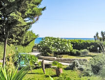 4-værelse-hus 130 m2. Enkelt og hensigtsmæssig indrettet: stor stue/spisestue med 1 sovemulighed og TV (fladskærms TV), klimaanlæg. Udgang til terrasse. Stue med åben kamin. Udgang til terrasse. Lille gennemgangsværelse med 1 dobbeltseng. 1 mindre dobbeltværelse. 1 mindre værelse med 1 seng. Kogeniche (4 kogeplader, ovn, Brødrister, mikroovn, fryser) med spisebord. Udgang til terrasse. Brus/bidet/WC. Træ-opvarming (ekstra), klimaanlæg, varmluftsopvarming (ekstra), vandkoger (80 liter). Opvarme kun tilgængelig fra 01.12. til 31.03. Stor terrasse 100 m2 delvis overdækket, 2 terrasser 25 m2. Havemøbler, grill. Indskrænkede udsigt over havet. Til benyttelse: vaskemaskine, strygejern myggenet højstol, barneseng til 2 år, hårtørrer. Internet (trådløs LAN [WLAN], gratis). 1 husdyr/hund tilladt. Her hvor hunde er tilladt og velkommen gæster er fine. Kom ind og føl den forfriskende brise af klimaanlægget. En terrasse er tilgængelig. Ved rengøring.- Faciliteter