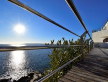 2-værelse-lejlighed 50 m2. Komfortabelt indrettet: stue/spisestue med 1 dobbelt sovesofa. 1 dobbeltværelse med sat-TV (fladskærms TV). Kogeniche (2 kogeplader, kedel). Brus/bidet/WC. Klimaanlæg. Lille terrasse. Havemøbler. Udsigt over havet. Til benyttelse: pengeskab, barneseng til 2 år (ekstra), hårtørrer. Internet (trådløs LAN [WLAN], gratis). Parkeringsplads (1 Bil). Bemærk venligst: køleskab uden fryser. Maksimum 1 husdyr/hund tilladt. CIR 19089017A600750 Udsigt over havet og beliggenheden er smuk. Der er en parkeringsplads til rådighed.- Faciliteter