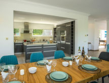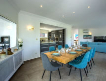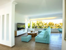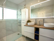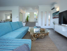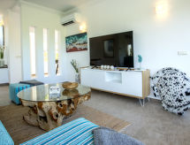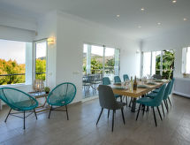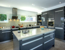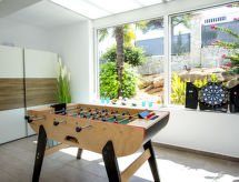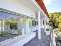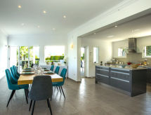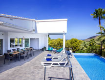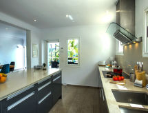 La Sella 7 km fra Dénia: Meget moderne, meget komfortabelt, luksuriøse villa "Laureen", omgivet af træer. I bydelen La Sella, uden for byen, 8 km fra bymidten af Dénia, rolig beliggenhed ved bakke, boligområde, område med lidt traffik, 6 km fra havet, 6 km fra stranden. Til alene benyttelse: stor, smuk, velplejet have (indhegnet) med planter og træer, pool kantet (10 x 5 m, 110 - 220 cm dyb, Sæsonbestemt tilgængelighed: 01.Jan. - 31.Dec.) med indetrappe. Udendørs brus, pergola, terrasse, havemøbler, grill, parkeringsplads (for 2 biler) på grunden. Indkøbsforretning 2 km, indkøbscenter 7 km, restaurant 2 km, café 2 km, sandstrand 10 km. Lystbådhavn 10 km, marina 10 km, golfbane (27 hul) 3 km, surfskole 10 km, sejladsskole 10 km, tennis 2 km, ridehal 5 km. Nærliggende attraktioner: Golf Resort La Sella 5 km. Bemærk venligst: bil anbefales. Ejeren accepterer ikke nogen ungdomsgrupper. Surfer venner pas på, den lokale kyst har ideelle betingelser for surfing. Jage bolden over nettet med et spil tennis på den lokale tennisbane.Interior