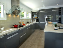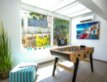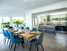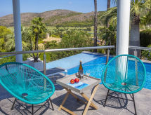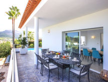 "Villa Laureen", 4-værelse-villa 200 m2. Rummelig og lys, meget pæn og stilfuld indrettet: stue/spisestue med sat-TV, klimaanlæg og varmluft opvarming. Udgang til terrasse, til pool. 1 værelse med 1 fransk seng (180 cm, længde 200 cm), brus/WC, digital TV, klimaanlæg og varmluft opvarming. 1 værelse med 1 fransk seng (180 cm, længde 200 cm), klimaanlæg og varmluft opvarming. 1 værelse med 2 senge (90 cm, længde 200 cm), klimaanlæg og varmluft opvarming. Store, åbent køkken (ovn, opvaskemaskine, 3 Induktionskomfur, Brødrister, mikroovn, fryser, elektrisk kaffemaskine). Brus/WC. Stor terrasse overdækket, øst vendt. Havemøbler, grill, liggestole (6). Herlige udsigt over havet, bjergene og dalen. Til benyttelse: vaskemaskine, strygejern højstol, barneseng, hårtørrer. Internet (trådløs LAN [WLAN], gratis). VT-493134-A Ferieejendomme herunder have at slappe af. En terrasse er tilgængelig. Velegnet til grill. En pool er tilgængelig. Der er en privat pool. Du er mere selvstændig med den specielle vaskemaskine. Huset er også udstyret med en ovn.- Faciliteter