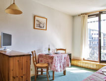 1-værelse-et-værelses lejlighed 18 m2 i 2. etage. Enkelt indrettet: stue/spisestue med 1 dobbelt sovesofa (140 cm, længde 190 cm). Udgang til altan. Kogeniche (2 kogeplader, mikroovn, elektrisk kaffemaskine). Bad/WC. El-opvarming. Lille altan, syd vest vendt. Flotte udsigt over bjergene. Til benyttelse: internet (trådløs LAN [WLAN], ekstra). Bemærk venligst: TV kun FR. Brandalarm. Residence. Der er et badekar. Huset er også udstyret med en internetforbindelse. Hvad ville et moderne køkken være uden en mikrobølgeovn? Den der selvfølgelig er tilgængelig.- Karakteristika for boligen