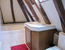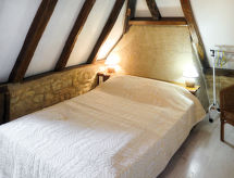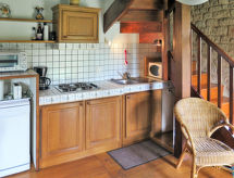 "Le Moulin (ONS400)", 3-værelse-hus 50 m2 på 2 etager. Emner egnet for 2 voksne + 2 børn. Hyggeligt og med meget træ indrettet: stue/spisestue med åben kamin, spisebord og sat-TV (fladskærms TV). Udgang til have. Lille, åbent køkken (4 kogeplader, miniovn, opvaskemaskine, Brødrister, kedel, mikroovn, fryser, elektrisk kaffemaskine). Overetage: 1 skrå værelse med 1 fransk seng (140 cm, længde 190 cm). 1 skrå mindre værelse med 1 x 2 køjesenge (90 cm, længde 190 cm). Bad/WC. El-opvarming. Trægulve, tæppe. Havemøbler, grill (bevægelig), opbevaringsrum. Til benyttelse: vaskemaskine, højstol, barneseng, brænde (gratis). Internet (trådløs LAN [WLAN], gratis). Bemærk venligst: ikke-ryger hus. Brandalarm. Undgå at ryge i sommerhuset. Det er ikke tilladt.- Faciliteter