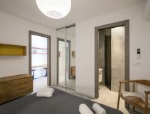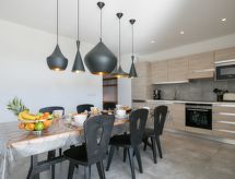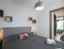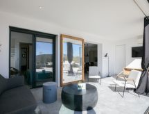 "Château", 4-værelse-lejlighed 123 m2, i stueetagen. Komfortabelt og hyggeligt indrettet: stue/spisestue med sat-TV (fladskærms TV). 1 værelse med 1 fransk seng (140 cm, længde 190 cm), brus. 2 værelse, alle værelser med 1 fransk seng (140 cm, længde 190 cm). Åbent køkken (4 kogeplader, ovn, opvaskemaskine, Brødrister, kedel, mikroovn, fryser). Brus/WC. Klimaanlæg. Terrasse 33 m2. Havemøbler. Til benyttelse: vaskemaskine. Internet (trådløs LAN [WLAN], gratis). Garage nr. 51. Bemærk venligst: ikke-ryger lejlighed. Brandalarm. Residence. For at holde det køligt om sommeren har dette feriehus aircondition.- Karakteristika for boligen