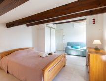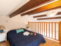 3-værelse-lejlighed 50 m2 på 2 etager i 3. etage. Stue/spisestue med TV (fladskærms TV), klimaanlæg. Udgang til terrasse. 1 skrå stort værelse, loftshøjde 145 - 220 cm med 1 fransk seng (1 x 140 cm, længde 190 cm), klimaanlæg. Køkken (ovn, 3 Induktionskomfur, Brødrister, kedel, mikroovn, elektrisk kaffemaskine). Bad, særskilt toilet. Overetage: (stejl trappe) 1 skrå værelse, loftshøjde 140 - 220 cm med 1 fransk seng (1 x 140 cm, længde 190 cm). Terrasse 8 m2. Havemøbler. Flotte udsigt over havet. Til benyttelse: vaskemaskine, strygejern hårtørrer. Internet (trådløs LAN [WLAN], gratis). Parkeringsplads nr. 74. Bemærk venligst: brandalarm, ingen elevator. Der er et badekar. Med udsigt over havet. Der er internetforbindelse.- Karakteristika for boligen