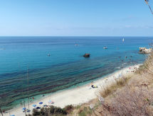 Santa Domenica Ricadi: Lille lejlighedshus "Le Terrazze", 40 meter over havets overflade, på 4 etager. 7 lejligheder i ejendommen. I bydelen Riaci, 2.5 km fra bymidten af Tropea, 10 km fra centrum af Capo Vaticano, 30 km fra bymidten af Vibo Valenzia, ved bakke, 700 m fra havet, 700 m fra stranden, direkte adgang til stranden. Til medbenyttelse: grund, have i forskellige niveauer, 3 ha (indhegnet) med planter og træer, naturhave, frugthave, gård. Havemøbler. I huset: trådløs LAN [WLAN]. Rengøring af lejlighed muligt (ekstra). Parkeringsplads ved huset på grunden. Indkøbsforretning, fødevarebutik 200 m, supermarked 2.5 km, restaurant, bar 700 m, togstation "Santa Domenica di Ricadi" 1 km, færge "Tropea - Isole Eoliche" 2.5 km, sandstrand 700 m. Bemærk venligst: bil anbefales, ingen elevator. Velegnet for familier. På forespørgsel: flygpladstransport til ferie-området. Af- og pålæsning af bagage er mulig ved ferieboligen. Residence med elektriske porte. Ejer bor på sammen grund. Toglinie 50 m fra huset. Få børnets øjne til livet med et besøg i forlystelsesparken.Interior