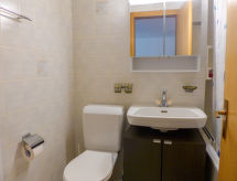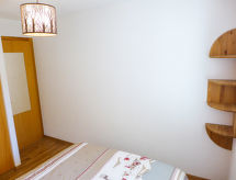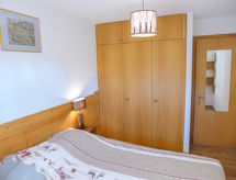2-værelse-lejlighed 50 m2, på forhøjet stueetage. Komfortabelt og pæn indrettet: stue/spisestue med 1 vægklapseng (90 cm, længde 200 cm), åben kamin, kabel-TV og fladskærms TV. Udgang til have, til terrasse, retning vest. 1 værelse med 1 fransk seng (140 cm, længde 200 cm). Kogeniche (4 kogeplader, ovn, opvaskemaskine, Brødrister, kedel, elektrisk kaffemaskine, Kapsler til kaffemasin (Nespresso) ekstra, fonduesæt (ost )). Bad/WC. Altanmøbler. Til benyttelse: hårtørrer. Internet (trådløs LAN [WLAN], gratis). Garage nr. J, højde 210 cm, bredde 250 cm. Bemærk venligst: ikke-ryger lejlighed. Residence. Undgå at ryge i sommerhuset. Det er ikke tilladt. Du kan tage elevatoren til gulvet i lejligheden. Huset er også udstyret med pejs. Der er en tørretumbler.- Karakteristika for boligen