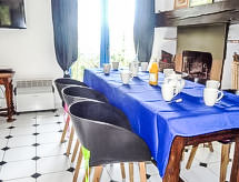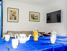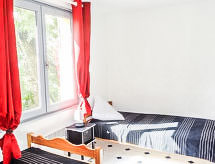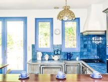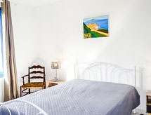 5-værelse-hus 100 m2 på 2 etager. Spisestue med åben kamin og TV (fladskærms TV). Udgang til terrasse. 1 værelse med 1 fransk seng (140 cm, længde 190 cm). Åbent køkken (ovn, opvaskemaskine, 3 keramiske kogeplader, mikroovn, fryser). Udgang til terrasse. Bad, særskilt toilet. Nederste etage: 1 værelse med 2 senge (90 cm, længde 190 cm). 1 værelse med 1 fransk seng (140 cm, længde 190 cm). 1 værelse med 2 senge (80 cm, længde 190 cm). Brus, særskilt toilet. Altan 3 m2, terrasse 40 m2, terrasse 15 m2. Havemøbler. Indskrænkede udsigt over havet. Til benyttelse: vaskemaskine. Internet (trådløs LAN [WLAN], ekstra). Bemærk venligst: 1 husdyr/hund tilladt. Brandalarm. 83065000048 OG Huset er også udstyret med en balkon. Det har en terrasse. En barneseng er tilgængelig. Der er en opvaskemaskine. Der er internetforbindelse.- Karakteristika for boligen