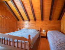 5-værelse-hus 145 m2 på 2 etager. Stue/spisestue 40 m2 med åben kamin og sat-TV (fladskærms TV). Udgang til terrasse. 1 værelse med 2 senge (90 cm, længde 200 cm). Åbent køkken (4 kogeplader, ovn, mikroovn, fryser, elektrisk kaffemaskine) med træovn. Brus/WC. Overetage: indgang med træovn og klimaanlæg. 2 skrå værelse, loftshøjde 135 - 250 cm, alle værelser med 1 fransk seng (180 cm, længde 200 cm). Udgang til altan. 1 skrå værelse, loftshøjde 135 - 250 cm med 2 senge (90 cm, længde 200 cm). Siddebadekar/WC. Træ-opvarming. Altan 8 m2, terrasse 46 m2 delvis overdækket. Havemøbler. Flotte udsigt over skoven. Til benyttelse: hårtørrer, brænde (gratis). Internet (trådløs LAN [WLAN], gratis). Bemærk venligst: 1 husdyr/hund tilladt. Brandslukker. Træ-opvarming er kun tilgængelig i perioden 01.09. - 31.05. (inkl.). En balkon er tilgængelig. Det har en internetforbindelse. Der er et bordtennisbord.- Faciliteter