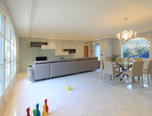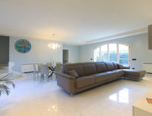 "Leonardo", 5-værelse-villa 250 m2 på 2 etager. Luksuriøs og smagfuld indrettet: åben stor stue/spisestue med TV (fladskærms TV), DVD. Udgang til havesideplads. 1 værelse med 2 senge, brus/bidet/WC og klimaanlæg. Køkken (4 kogeplader, ovn, opvaskemaskine, mikroovn, fryser, elektrisk kaffemaskine) med spisebord og klimaanlæg. Overetage: 1 dobbeltværelse med bad/bidet/WC og klimaanlæg. Udgang til terrasse. 1 dobbeltværelse med brus/bidet/WC og klimaanlæg. Udgang til altan. 1 værelse med 2 senge, brus/bidet/WC og klimaanlæg. Udgang til terrasse. El-opvarming, gulvvarme (ekstra). Opvarme kun tilgængelig fra 01.11. til 15.04. Stor terrasse 50 m2, terrasse 35 m2, havesiddeplads 35 m2. Havemøbler, grill. Til benyttelse: vaskemaskine, tørretumbler, pengeskab, strygejern hårtørrer. Internet (trådløs LAN [WLAN], gratis). Velegnet for familier. I vores have har du god plads til afslapning og rekreation. Klimaanlægget sikrer en god stuetemperatur. Fordi den følsomme faktor spiller en vigtig rolle og er vigtig for os. Det har en terrasse. Velegnet til grill. Huset er også udstyret med overdækket parkeringsplads. Der er en privat pool. Det har en internetforbindelse. Ved rengøring. En dvd-afspiller er tilgængelig. Der er en mikrobølgeovn til rådighed.- Karakteristika for boligen