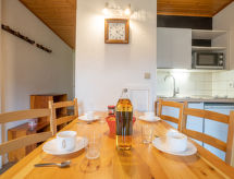 Lille residens "Les Asters", på 5 etager. I bydelen Fontanettes, 800 m fra bymidten af La Croisette, rolig beliggenhed, 50 m fra skiområdet. Offentlige parkeringspladser på vejen. Fødevarebutik, indkøbscenter 800 m, 10 minut promenad til center. Sportcentrum 800 m, stolelift, skisportanlæg 100 m, skipiste 50 m, skiskole 800 m, langrendsløjpe 1.5 km. Kendte skiområder nås nemt: Les 3 Vallées. Bemærk venligst: ingen elevator. For naturelskere, langrend, skiløb og nordisk-ski-ski er et fantastisk alternativ. Udnyt denne sportsbevægelse i sneen. Til snowboardere er det en rigtig god feriemål. Toboggan løber tilbyder masser af kælkning sjov i flere dage på stedet.Interior