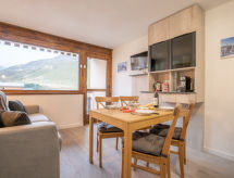 "Asters 314 Bâtiment A1", 1-værelse-et-værelses lejlighed 24 m2 i 3. etage, syd vendt. Fuldstændig renoveret i år 2022, hensigtsmæssig og pæn indrettet: stue/spisestue med 1 sovesofa (140 cm, længde 190 cm), TV (fladskærms TV), elektrisk opvarming og elektriske jalousier. Udgang til altan, retning syd. 1 mindre værelse med 1 fransk seng (140 cm, længde 190 cm). Kogeniche (opvaskemaskine, 2 Induktionskomfur, Brødrister, kedel, fryser, elektrisk kaffemaskine, Kapsler til kaffemasin (Nespresso) ekstra, raclettegrill, kombi-ovn, fonduesæt (ost )). Brus/WC. Meget flotte udsigt over bjergene. Til benyttelse: internet (trådløs LAN [WLAN], ekstra). Bemærk venligst: ikke-ryger lejlighed. Brandalarm. Residence.- Karakteristika for boligen
