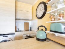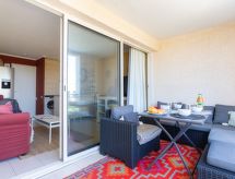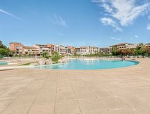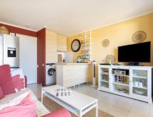 2-værelse-lejlighed 27 m2 i 2. etage. Emner egnet for 2 voksne + 2 børn. Delvis renoveret i år 2022: stue/spisestue med 1 dobbelt sovesofa (140 cm, længde 190 cm), TV (fladskærms TV). Udgang til terrasse. 1 mindre værelse med 1 x 2 køjesenge (80 cm, længde 190 cm). Kogeniche (ovn, opvaskemaskine, 2 keramiske kogeplader, Brødrister, kedel, mikroovn, elektrisk kaffemaskine). Bad, særskilt toilet. Terrasse 9 m2, overdækket. Havemøbler. Udsigt over havet og svimmingpoolen. Til benyttelse: vaskemaskine, tørretumbler, strygejern. Internet (trådløs LAN [WLAN], gratis). Parkeringsplads nr. 236. Bemærk venligst: ikke-ryger lejlighed. Brandalarm. 83065000062YK Bad i huset. Til jeres velvære kan du nyde boblebadet i feriesæsonen. En imponerende legeplads ligger også på ejendommen. Der er en parkeringsplads til rådighed. Der er en børnepool. Det har en tørretumbler. Der er et bordtennisbord.- Karakteristika for boligen