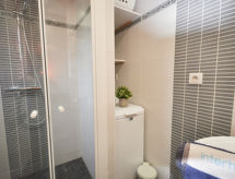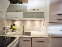 2-værelse-lejlighed 35 m2 på 2 etager i 1. etage, syd vendt. Pæn indrettet: stue/spisestue med 1 dobbelt sovesofa (140 cm, længde 190 cm), TV. Udgang til terrasse. Kogeniche (miniovn, opvaskemaskine, 3 Induktionskomfur, Brødrister, kedel, mikroovn, elektrisk kaffemaskine). Brus, særskilt toilet. Overetage: (vindeltrappe) 1 skrå værelse, loftshøjde 215 - 175 cm med 1 fransk seng (160 cm, længde 200 cm), elektrisk opvarming. Terrasse 8 m2. Havemøbler. Udsigt over havet. Til benyttelse: vaskemaskine, hårtørrer. Internet (trådløs LAN [WLAN], gratis). Parkeringsplads nr. 8. Bemærk venligst: maksimum 1 husdyr/hund tilladt. Brandalarm. Residence. Til jeres velvære kan du nyde boblebadet i feriesæsonen. Find ud af det eksisterende tv-apparat. Uanset om lokale nyheder eller internationale nyheder, med fjernsynet, er du altid velinformeret.- Karakteristika for boligen