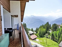 Lille lejlighedshus "Les Pins". Ovenfor Montana, i bydelen Violettes, ved bykanten, 2 km fra centrum af Montana, rolig beliggenhed. I huset: vaskemaskine, tørretumbler (til medbenyttelse, ekstra). Single garage, offentlig pakeringshus i 150 m, ekstra. Indkøbsforretning 2 km, fødevarebutik 2 km, restaurant 2 km, bageri 300 m, busstoppested "Violettes" 150 m. Skisportanlæg, skipiste, skiudlejning 150 m. Hvad med en dejlig udendørs oplevelse under en vandretur i det flade område? Der er du lige præcis. Den omkringliggende periferi er også en førsteklasses langrend skisportssted. Gå alene, med din familie eller med venner i isbanen, som er tilgængelig for alle. Snowboardere finder ideelle forhold i bakkerne her.Interior
