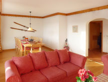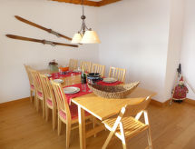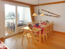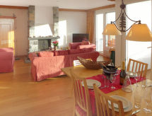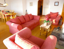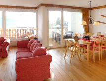 4-værelse-lejlighed 100 m2 i 4. etage. Rummelig, pæn indrettet: stue/spisestue med åben kamin og kabel-TV. Udgang til altan. 1 værelse med 1 fransk seng (160 cm, længde 200 cm). 1 værelse med 3 senge (90 cm, længde 190 cm). Udgang til altan. 1 skrå børneværelse med 2 senge (80 cm, længde 195 cm) (90 cm, længde 190 cm). Køkken (ovn, opvaskemaskine, 4 keramiske kogeplader, Brødrister, kedel, mikroovn, fryser, elektrisk kaffemaskine, Kapsler til kaffemasin (Nespresso) ekstra, raclettegrill, fonduesæt (chinoise, ost )). Bad/WC, brus/WC. Stor altan, syd vendt og vest vendt. Altanmøbler, liggestole (1). Flotte udsigt over bjergene og landskabet. Til benyttelse: hårtørrer. Internet (trådløs LAN [WLAN], gratis). Garage nr. 2, højde 205 cm, bredde 215 cm. Bemærk venligst: ikke-ryger lejlighed. En balkon er tilgængelig. En overdækket parkeringsplads er tilgængelig. En vaskemaskine er tilgængelig til brug. Der er internetforbindelse. Der er en mikrobølgeovn.- Karakteristika for boligen