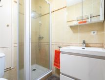 4-værelse-lejlighed 120 m2, på forhøjet stueetage. Komfortabelt og pæn indrettet: stor stue/spisestue med TV (fladskærms TV). Udgang til terrasse. 1 værelse med 1 fransk seng (140 cm, længde 190 cm), bad/WC og TV (fladskærms TV). Udgang til terrasse. 2 værelse, alle værelser med 1 fransk seng (140 cm, længde 190 cm), TV (fladskærms TV). Åbent køkken (ovn, opvaskemaskine, 4 keramiske kogeplader, mikroovn, fryser, elektrisk kaffemaskine). Brus/WC, særskilt toilet. Klimaanlæg. Stor terrasse 100 m2, syd øst vendt. Havemøbler, elektrisk grill, liggestole (3). Udsigt over bjergene og svimmingpoolen. Til benyttelse: vaskemaskine, tørretumbler. Internet (trådløs LAN [WLAN], gratis). Parkeringsplads (1 Bil). Bemærk venligst: brandalarm. Residence. En imponerende legeplads ligger også på ejendommen. For at holde det køligt om sommeren har dette feriehus aircondition. Der er en parkeringsplads til rådighed. Det har en pool.- Karakteristika for boligen