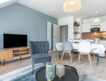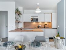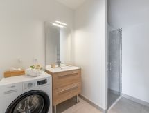 Moderne flerfamiliehus "Les Villas du Men Du", på 2 etager, bygget i 2022. I byen, 300 m fra havet, 300 m fra stranden. I huset: cykelrum. Supermarked 200 m, restaurant, bar 500 m, bageri 1 km, café 500 m, cykeludlejning 1 km, sandstrand "Plage du Men Du" 300 m, varmtvandsbad "Thalassothérapie Thalazur" 2 km. Golfbane (18 hul) 15 km, surfskole 6 km, sejladsskole 2 km. Nærliggende attraktioner: Les Alignements de Carnac 5 km, La Trinité sur Mer 5 km, Presqu'ile de Quiberon 15 km, Vannes 30 km, Lorient 40 km, Belle Ile en Mer, Houat, Hoedic. Vandrestier Le Golfe du Morbihan 30 km. Tilbringe de bedste dage på året på en sejlbåd er en anden mulighed. Sportligt udforske naturen og nyde dagen på et sejlskib. Her er en førende mulighed for surfing. Surfing er en lidenskab, der har dræbt millioner af mennesker over hele verden.Interior