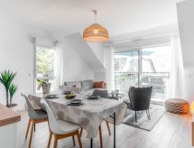 3-værelse-lejlighed 65 m2 i 1. etage. Rummelig, moderne indrettet: stue/spisestue med TV og fladskærms TV. Udgang til altan. 1 værelse med 2 senge (80 cm, længde 190 cm). 1 værelse med 1 fransk seng (1 x 160 cm, længde 190 cm). Åbent køkken (ovn, opvaskemaskine, 3 Induktionskomfur, Brødrister, kedel, mikroovn, fryser, elektrisk kaffemaskine). Brus, særskilt toilet. Altan 5 m2. Altanmøbler. Til benyttelse: vaskemaskine, hårtørrer. Internet (trådløs LAN [WLAN], gratis). Parkeringsplads. Bemærk venligst: lejlighed ligger på vejsiden. Brandalarm. Offer by a private individual according to Art. 155, IV of CGI. En barneseng er tilgængelig. Der er internetforbindelse.- Faciliteter