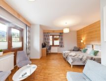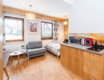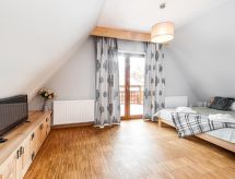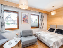 Zakopane: Moderne, hyggeligt flerfamiliehus "Lipki Park Resort". Rolig, solrige, høj beliggenhed. Til medbenyttelse: svømmehalle. I huset: trådløs LAN [WLAN], spa-område, centralvarme. Morgenmad efter aftale. Parkeringsplads ved huset på grunden. Restaurant 500 m. Nærliggende attraktioner: Aqua Park Zakopane 2 km, Muzeum Mineralogiczne. Kendte skiområder nås nemt: Wielka Krokiew 1.4 km, Gubałówka 2.4 km, Wyciag narciarski Kasprowy Wierch 3.3 km. Bemærk venligst. Det omkringliggende skiområde er et alsidigt område til dyb snefans og sneglere for snowboarding, carving, freeriding eller skiløb.Interior