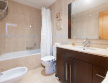 "Lisa", 4-værelse-rækkehus 115 m2. Hensigtsmæssig og komfortabelt indrettet: stue/spisestue med digital TV og klimaanlæg. Udgang til terrasse. Store køkken (ovn, 4 keramiske kogeplader, Brødrister, kedel, mikroovn, fryser, elektrisk kaffemaskine). Særskilt toilet. Intet opvarmningsalternativ. Nederste etage: legeværelse. Overetage: 1 værelse med 1 fransk seng (135 cm, længde 190 cm), brus/WC og ventilator. 1 værelse med 1 fransk seng (150 cm, længde 190 cm), klimaanlæg. 1 værelse med 2 senge (90 cm, længde 190 cm), ventilator. Brus/WC. Havemøbler, grill, liggestole. Panoramaudsigt over havet. Til benyttelse: vaskemaskine, strygejern højstol, barneseng til 3 år, hårtørrer. Internet (trådløs LAN [WLAN], gratis). VFT/MA/47778 Med udsigt over havet. Kom ind og føl den forfriskende brise af klimaanlægget. Velegnet til grill. Huset er også udstyret med overdækket parkeringsplads. Det har en pool. Det har et trådløst lokalnetværk (WLAN).- Faciliteter