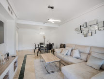 Meget smuk flerfamiliehus "Lorcrimar". Nueva Andalucía, ved bykanten, 1.9 km fra centrum af Puerto Banús, 1 km fra havet, 1 km fra stranden. Til medbenyttelse: have med græsplæne, pool (120 - 130 cm dyb, Sæsonbestemt tilgængelighed: 01.Jun. - 30.Sep. poolen åbningstider: 12:00-20:00). Formet pool. Brus/toilet i poolområdet. I huset: trådløs LAN [WLAN]. Fælles garage. Supermarked 400 m, indkøbscenter 1 km, restaurant 200 m, sandstrand 1 km. Lystbådhavn 1.9 km, golfbane 2.5 km. Marbella er det perfekte rejsemål for dem der søger den særlige sejloplevelse.Interior
