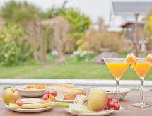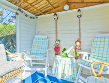 3-værelse-bungalow. Komfortabelt og stilfuld indrettet: stue med TV (fladskærms TV). 1 dobbeltværelse med 1 dobbeltseng. 1 værelse med 2 senge. Køkken (4 kogeplader, ovn, mikroovn, grill) med spisebord. Udgang til have. Bad/brus/WC. Opvarming. Havesiddeplads, have. Havemøbler. Herlige udsigt over havet og bugt. Til benyttelse: vaskemaskine, strygejern hårtørrer. Internet (trådløs LAN [WLAN], gratis). Bemærk venligst: velegnet for familier. Ikke-ryger hus. 1 husdyr/hund tilladt. TV kun EN. En tilhørende idyllisk have inviterer dig til at sidde i solen. Hvis vejret ikke spiller, er der også et tv.- Karakteristika for boligen
