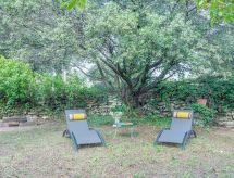 "Lou Vaqui (GRG103)", 3-værelse-hus 48 m2. Emner egnet for 2 voksne + 1 barn. Hensigtsmæssig indrettet: stue med sat-TV, DVD og klimaanlæg. Udgang til terrasse. 1 værelse med 1 fransk seng (160 cm). 1 mindre værelse, uden vindue med 1 seng. Åbent køkken (ovn, opvaskemaskine, 2 Induktionskomfur, 2 gasblus, Brødrister, kedel, mikroovn, fryser, elektrisk kaffemaskine) med spisebord. Brus, bidet, særskilt toilet. El-opvarming. Terrasse. Havemøbler, elektrisk grill, liggestole (2). Til benyttelse: vaskemaskine, højstol, barneseng. Internet (trådløs LAN [WLAN], gratis). Bemærk venligst: ikke-ryger hus. Vores have venter på dig for en dukkert i afslapningen. Selvom det bliver så varmt om natten, er det dejligt, du kan tænde klimaanlægget og sove i et behageligt tempereret indeklima. Huset er også udstyret med en terrasse. En overdækket parkeringsplads er tilgængelig. Find ud af det eksisterende tv-apparat. Uanset om lokale nyheder eller internationale nyheder, med fjernsynet, er du altid velinformeret. Der er en dvd-afspiller.- Faciliteter