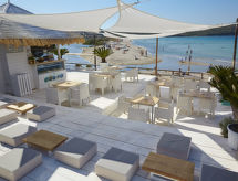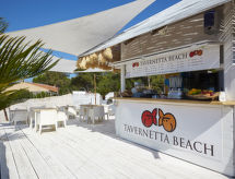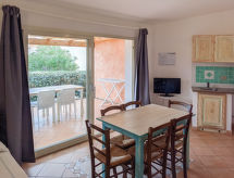 "Lu Nibareddu (PTA104)", 3-værelse-lejlighed 45 m2. Enkelt indrettet: stue/soveværelse med 2 senge, spisebord, sat-TV og klimaanlæg. 2 værelse, alle værelser med 2 sovemuligheder. Kogeniche (4 gasblus). Brus/WC. Altan eller terrasse. Altanmøbler. Til benyttelse: barneseng (ekstra). I komplekset af denne ferie indkvartering er direkte en restaurant. Halvpension er en del af en helt ubekymret ferie. Ferieboligen i Porto San Paolo byder også på morgenmad. Den afslapning og livsstilen i haven er uundværlig på ferie. Det har en børnepool.- Faciliteter