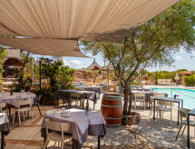 "Lu Nibareddu (PTA106)", 3-værelse-hus 60 til 65 m2. Enkelt indrettet: stue/soveværelse med 2 senge, spisebord, sat-TV og klimaanlæg. 1 dobbeltværelse med brus/WC. 1 værelse med 2 sovemuligheder. Kogeniche (4 gasblus). Brus/WC. Terrasse. Havemøbler. Til benyttelse: barneseng (ekstra). For nyttige oplysninger bedes du kontakte receptionisten. Til de kulinariske behov finder de en cateringvirksomhed. Halvpension er en del af en helt ubekymret ferie. Vi inviterer dig gerne til morgenmad hver dag. Den undertrykkende varme kan lægge en tung belastning på krop og sind. Derfor er lokalerne udstyret med aircondition. En terrasse er tilgængelig. Huset er også udstyret med en børnebassin.- Faciliteter