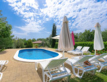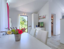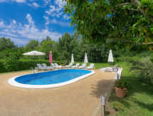 Marceljani 3 km fra Labin: Smuk enfamiliehus "Lucija", bygget i 2018, omgivet af træer. Rolig, solrige beliggenhed, 8 km fra havet, i det grønne. Til medbenyttelse: grund 5'000 m2, stor have med planter og træer, liggeplæne, pool (8 x 4 m, 140 cm dyb, Sæsonbestemt tilgængelighed: 04.Maj. - 14.Sep. poolen åbningstider: 08:00-20:00). Udendørs brus, grill. I huset: adgang til internet. Parkeringsplads ved huset på grunden. Indkøbsforretning 2 km, restaurant 3 km, kiselstenstrand 8 km. Bemærk venligst: objoktnummer HR2880.400 er beliggende på samme grund.Interior