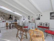 "Lunaria", 2-værelse-lejlighed 80 m2, i stueetagen. Emner egnet for 2 voksne + 1 barn. Rummelig og lys, fuldstændig renoveret i år 2012, meget smagfuld og stilfuld indrettet: stue/spisestue med åben kamin, spisebord, sat-TV og internationale TV-kanaler (fladskærms TV), stereoanlæg. Udgang til have. 1 åbent stort dobbeltværelse med 1 seng (160 cm), 1 sovesofa og brus/bidet/WC. Åbent køkken (ovn, opvaskemaskine, Gaskomfur, 6 gasblus, Brødrister, kedel, fryser, elektrisk kaffemaskine). Opvarming (ekstra). Parketgulve, naturlige stengulve. Terrasse. Havemøbler, grill, liggestole (2). Flotte panoramaudsigt over landskabet. Til benyttelse: myggenet højstol, barneseng til 2 år, hårtørrer. Internet (trådløs LAN [WLAN], gratis). Parkeringsplads nr. 1 (1 Bil). Bemærk venligst: velegnet for familier. Ikke-ryger lejlighed. 1 husdyr/hund tilladt. Privat indgang. Ingen obligatoriske ekstra gebyrer skal betales på stedet undtagen lokal skat. Sengelinned, håndklæder, slutrengøring og el er inkluderet. En tilhørende idyllisk have inviterer dig til at sidde i solen. Velegnet til grill.- Faciliteter