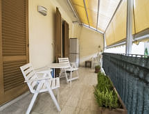 "Lungomare", 3-værelse-lejlighed 80 m2 i 1. etage. Rummelig og lys, komfortabelt indrettet: stor stue/spisestue med 1 sovesofa, spisebord og TV (fladskærms TV). 1 dobbeltværelse med brus/bidet/WC. Udgang til terrasse. 1 værelse med 1 seng og 1 udtræksseng. Udgang til terrasse. Lille køkken (4 kogeplader, ovn, opvaskemaskine). Bad/bidet/WC. Gas-opvarming, klimaanlæg. Opvarme kun tilgængelig fra 01.11. til 15.04. Terrasse 15 m2 delvis overdækket. Havemøbler. Indskrænkede udsigt over havet. Til benyttelse: vaskemaskine, strygejern. Internet (trådløs LAN [WLAN], gratis). Indvendigt er der rummeligt og smukt med 2 soveværelser og 2 badeværelse samt en stor dagligstue og en behagelig terrasse, hvor du kan slappe af. Ejendom med elevator. En vaskemaskine er tilgængelig til brug.- Aktiviteter i nærheden