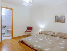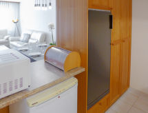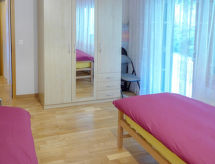 3-værelse-lejlighed 80 m2 i 1. etage. Lys, moderne indrettet: stue/spisestue med åben kamin, kabel-TV og fladskærms TV. Udgang til altan, retning syd. 1 værelse med 1 fransk seng (160 cm, længde 200 cm), bad/WC. Udgang til terrasse, retning nord. 1 værelse med 2 senge (80 cm, længde 190 cm). Udgang til terrasse, retning nord. Åbent køkken (ovn, opvaskemaskine, 4 keramiske kogeplader, Brødrister, kedel, mikroovn, elektrisk kaffemaskine, Kapsler til kaffemasin (NESPRESSO) ekstra, raclettegrill, fonduesæt (ost )). Brus/WC. Altan 7 m2, syd vendt. Altanmøbler, liggestole (2). Flotte udsigt over bjergene og landskabet. Til benyttelse: strygejern hårtørrer. Internet (trådløs LAN [WLAN], gratis). Bemærk venligst: ikke-ryger lejlighed. Maksimum 1 husdyr/hund tilladt. Residence. Huset er også udstyret med en terrasse. En barneseng er tilgængelig. Det har en parkeringsplads. Der er en mikrobølgeovn.- Karakteristika for boligen