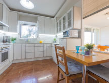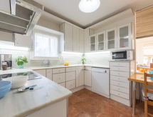 4-værelse-hus 214 m2. Rummelig, enkelt og komfortabelt indrettet: stor stue/spisestue med 1 dobbelt sovesofa og digital TV. Udgang til terrasse. Køkken (ovn, opvaskemaskine, 4 keramiske kogeplader, Brødrister, kedel, mikroovn, fryser, elektrisk kaffemaskine, dampkogegryde). Bad/WC. Intet opvarmningsalternativ. Overetage: 1 værelse med 1 fransk seng (135 cm, længde 190 cm), bad/WC. 1 værelse med 2 senge (90 cm, længde 190 cm), 1 x 2 køjesenge (80 cm, længde 180 cm). 1 værelse med 1 fransk seng (1 x 135 cm, længde 190 cm). Stor terrasse. Havemøbler, liggestole. Til benyttelse: vaskemaskine, strygejern højstol, barneseng til 2 år, hårtørrer. Internet (trådløs LAN [WLAN], gratis). Velegnet for familier. Maksimum 2 husdyr/hunde tilladt. HUTTE001614 Der er et badekar. Ejendommen er helt indhegnet. Der er en privat pool.- Faciliteter