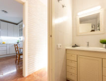 Urb. Ampolla Mar: Hyggeligt, komfortabelt hus "Mar Roig", på 3 etager. I byen, 1.3 km fra bymidten af l'Ampolla, solrige beliggenhed, 300 m fra havet, 300 m fra stranden, krydse vejen. Til alene benyttelse: grund (indhegnet), pool (oppsted svømmebassin) kantet (3 x 5 m, 120 cm dyb, Sæsonbestemt tilgængelighed: 01.Jan. - 31.Dec.). Terrasse, havemøbler, grill, offentlige parkeringspladser på vejen. Supermarked 1 km, restaurant 350 m, togstation "L'Ampolla" 1.8 km. Nærliggende attraktioner: Parque Natural del Ebro 5 km, parque Portaventura 65 km, Pitch & Putt 2 km. For alle de surfere, der gerne vil køre en god bølge, er dette muligheden. Med attraktioner og shows tilbyder temaparken mange forskellige. Et must for familier!Interior