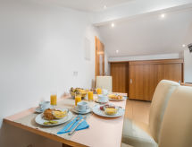"Mare 9", 2-værelse-lejlighed 40 m2 i 2. etage. Delvis skråt, pæn og moderne indrettet: stue med 1 dobbelt sovesofa (145 cm, længde 195 cm), sat-TV og klimaanlæg. Udgang til terrasse. 1 værelse med 1 dobbeltseng (160 cm, længde 200 cm). Åbent køkken (4 kogeplader, mikroovn, fryser) med spisebord. Bad/WC. Terrasse 10 m2, overdækket. Havemøbler. Herlige udsigt over havet. Til benyttelse: pengeskab. Internet (trådløs LAN [WLAN], gratis). Parkeringsplads. Der er et badekar. Læn dig tilbage, ferien følelsen begynder i den tilhørende have. Der er en veranda. En opvarmet pool er tilgængelig. Huset er også udstyret med en børnebassin. Der er internetforbindelse.- Faciliteter