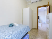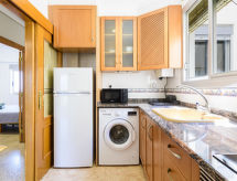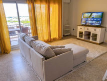 "Maritimo", 4-værelse-lejlighed 97 m2 i 5. etage. Hensigtsmæssig og komfortabelt indrettet: stue/spisestue med digital TV, fladskærms TV, klimaanlæg og varmluft opvarming. Udgang til terrasse. 1 værelse med 1 fransk seng (160 cm, længde 200 cm). 2 værelse, alle værelser med 1 udtræksseng (2 x 90 cm, længde 190 cm). Køkken (4 kogeplader, ovn, mikroovn, fryser). Brus/bidet/WC. Terrasse 12 m2. Havemøbler. Udsigt over byen. Til benyttelse: vaskemaskine, strygejern hårtørrer. Internet (trådløs LAN [WLAN], gratis). R000000001 Praktisk med elevatoren til hoveddøren. Der er en mikrobølgeovn.- Faciliteter