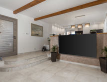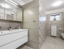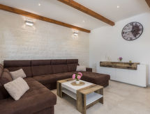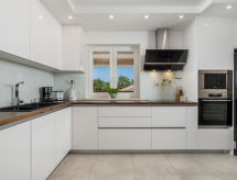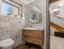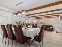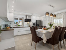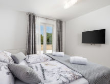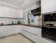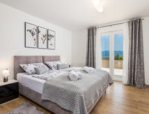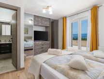 5-værelse-villa 180 m2 på 2 etager. Pæn og moderne indrettet: stue/spisestue med 1 dobbelt sovesofa (130 cm, længde 200 cm), sat-TV. Udgang til terrasse. 1 værelse med 1 fransk seng (180 cm, længde 210 cm), sat-TV. Åbent køkken (ovn, opvaskemaskine, 4 Induktionskomfur, Brødrister, kedel, mikroovn, fryser, elektrisk kaffemaskine). Brus/WC. Overetage: 1 værelse med 1 fransk seng (180 cm, længde 200 cm), brus/WC og sat-TV. Udgang til altan. 1 værelse med 2 senge (90 cm, længde 210 cm), sat-TV. Udgang til terrasse. 1 værelse med 1 fransk seng (160 cm, længde 210 cm), sat-TV. Brus/WC, dobbelt håndvask. Klimaanlæg, varmluftsopvarming. Altan 40 m2, terrasse 40 m2, overdækket. Altanmøbler. Vid udsigt over havet. Til benyttelse: pengeskab, strygejern myggenet højstol, barneseng (ekstra), hårtørrer. Internet (trådløs LAN [WLAN], gratis). Bemærk venligst: 1 husdyr/hund tilladt. Brandslukker. Især efter en begivenhedsrig ferie hjælper et brusebad med at opdatere. En rigtig god fornøjelse takket være den tilgængelige bruser. Der er en parkeringsplads til rådighed. En pool er tilgængelig. Huset er også udstyret med en privat pool.- Faciliteter