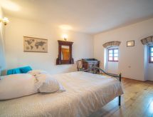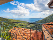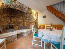 3-værelse-rækkehus 100 m2 på 2 etager, syd vendt. Stue/spisestue 30 m2 med 1 sovesofa (110 cm, længde 180 cm), åben kamin og sat-TV (fladskærms TV). 1 værelse med 1 sovesofa (85 cm, længde 190 cm), 1 fransk seng (140 cm, længde 200 cm). Åbent køkken (4 kogeplader, ovn, mikroovn, fryser, elektrisk kaffemaskine). Bad/bidet/WC. Overetage: indgang med TV (fladskærms TV). Udgang til terrasse. 1 værelse med 1 dobbeltseng (2 x 90 cm, længde 190 cm), klimaanlæg. Åbent køkken (2 kogeplader, opvaskemaskine, kedel). Brus/bidet/WC. El-opvarming (ekstra), varmluftsopvarming (ekstra). Opvarme kun tilgængelig fra 01.10. til 31.05. Terrasse 30 m2, overdækket. Havemøbler, liggestole. Meget flotte udsigt over havet og landskabet. Til benyttelse: pengeskab. Internet (trådløs LAN [WLAN], gratis). Velegnet til grillning. Der er en ovn til rådighed.- Aktiviteter i nærheden
