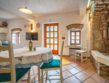 Rustikt rækkehus "Mickey", på 2 etager. I lille byen Sučići, 3 km fra bymidten af Mošćenička Draga, rolig, solrige beliggenhed ved bakke, 3 km fra havet, 3 km fra stranden, i en blind vej. Til alene benyttelse: terrasse (10 m2), havemøbler, grill. I huset: adgang til internet, vaskemaskine. Smal tilkørsel til 60 m til huset. Parkeringsplads (for 2 biler) i 80 m. Indkøbsforretning 3 km, restaurant 3 km, kiselstenstrand 3 km, strandliggende pool 3 km. Glem ikke at pakke gode sko til en vandretur i det flade område.Interior