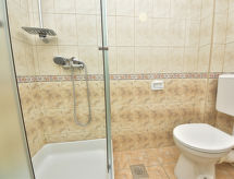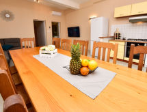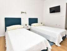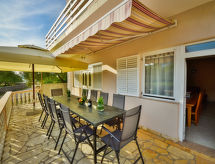 6-værelse-hus 150 m2 på 2 etager. Enkelt indrettet: stue/spisestue 35 m2 med sat-TV og klimaanlæg. Udgang til terrasse. 1 værelse med 1 fransk seng (160 cm, længde 200 cm). Åbent køkken (4 kogeplader, ovn, opvaskemaskine, mikroovn, fryser). Brus/WC. Overetage: indgang med klimaanlæg. 1 værelse med 2 senge (80 cm, længde 190 cm), brus/WC og sat-TV. Udgang til altan. 1 værelse med 1 sovesofa (120 cm, længde 200 cm), 1 fransk seng (160 cm, længde 200 cm), brus/WC. Udgang til altan. 1 værelse med 2 senge (80 cm, længde 200 cm), brus/WC og sat-TV. Udgang til altan. 1 værelse med 1 sovesofa (120 cm, længde 200 cm), 1 dobbeltseng (2 x 80 cm, længde 200 cm), brus/WC og sat-TV. Udgang til altan. Altan 12 m2, altan 12 m2, stor terrasse 30 m2 delvis overdækket terrasse 15 m2. Havemøbler. Udsigt over havet. Til benyttelse: højstol, barneseng. Internet (trådløs LAN [WLAN], gratis). Bemærk venligst: 1 husdyr/hund tilladt. Brandslukker. Til jeres velvære kan du nyde boblebadet i feriesæsonen. Der er en barneseng. Huset er også udstyret med et trådløst lokalnetværk (WLAN).- Faciliteter