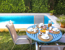 "Casa Mirlo", 4-værelse-halvt dobbelthus 130 m2 på 2 etager. Rummelig og lys, meget pæn og stilfuld indrettet: stue/spisestue med digital TV, klimaanlæg og varmluft opvarming. Udgang til have, til pool. Åbent køkken (3 kogeplader, ovn, opvaskemaskine, Brødrister, mikroovn, fryser, elektrisk kaffemaskine, Kapsler til kaffemasin (Nespresso Not Incl.)). Brus/WC. Nederste etage: 1 værelse med 1 fransk seng (160 cm, længde 190 cm), klimaanlæg og varmluft opvarming. 1 værelse med 2 senge (90 cm, længde 190 cm), klimaanlæg og varmluft opvarming. 1 værelse med 1 x 2 køjesenge (80 cm, længde 180 cm), klimaanlæg og varmluft opvarming. Bad/WC, brus/WC. Have, græsplæne. Havemøbler, liggestole. Til benyttelse: vaskemaskine, tørretumbler, strygejern myggenet højstol, barneseng, hårtørrer. Internet (trådløs LAN [WLAN], gratis). Parkeringsplads. Bemærk venligst: TV kun ES. VT-491587-A Der er en opvaskemaskine. Huset er også udstyret med en privat pool. Huset er også udstyret med en internetforbindelse. Der er en tørretumbler.- Aktiviteter i nærheden
