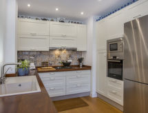 Stor, meget smuk, meget komfortabelt dobbelthus "Mirlo", på 2 etager. I byen, 3 km fra bymidten, rolig, solrige beliggenhed, 500 m fra havet, 500 m fra stranden. Til alene benyttelse: smuk, velplejet have med græsplane og træer, pool kantet (5 x 4 m, 80 - 180 cm dyb, Sæsonbestemt tilgængelighed: 01.Jan. - 31.Dec.) med indetrappe. Udendørs brus, havemøbler, parkeringsplads på grunden. Supermarked 2 km, restaurant 450 m, bar, café 500 m, sandstrand "Plaza de Les Marines" 500 m. Lystbådhavn 3 km, surfskole 1 km, tennis 2 km. Ejeren accepterer ikke nogen ungdomsgrupper. Enhver kan være aktiv på et sejlskib. Nyd en autentisk oplevelse på vandet mens du sejler.Interior