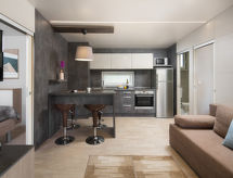 "Mon Perin Mobilhome Villa Prestige", 3-værelse-campingvogn 40 m2. Stue/spisestue med 1 dobbelt sovesofa, boblebad og sat-TV (fladskærms TV), klimaanlæg. Udgang til terrasse. 1 værelse med 1 fransk seng. Udgang til terrasse. 1 værelse med 2 senge. Udgang til terrasse. Åbent køkken (4 keramiske kogeplader, mikroovn, elektrisk kaffemaskine). 2 brus/WC. Terrasse 25 m2, overdækket. Havemøbler, liggestole (2). Til benyttelse: internet (trådløs LAN [WLAN], gratis). Bemærk venligst: ikke-ryger hus. Maksimum 1 husdyr/hund tilladt. Hytterne er 50 - 200 m fra havet og stranden. To-benede og firbenede venner på ferie er her mulig, fordi alle er velkommen her. Kæledyr er tilladt. Vil du ikke altid lave mad på ferie? Forkæl dig selv med et besøg på den vedlagte restaurant. For jeres velvære kan du nyde boblebadet i feriesæsonen. En imponerende legeplads ligger også på ejendommen. Der er en børnepool. Hvis vejret ikke spiller, er der også et tv. En tørretumbler er tilgængelig. For at forberede noget hurtigt selv er en mikrobølgeovn klar.- Faciliteter