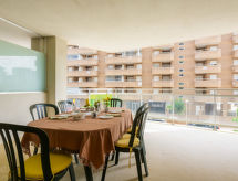 "Mondrian - Marina d'Or", 3-værelse-lejlighed 60 m2 i 1. etage. Hensigtsmæssig og komfortabelt indrettet: stue/spisestue med 1 dobbelt sovesofa, spisebord, digital TV, fladskærms TV, klimaanlæg og varmluft opvarming. Udgang til terrasse. 1 dobbeltværelse med 1 fransk seng (135 cm, længde 190 cm), brus/bidet/WC. 1 dobbeltværelse med 2 senge (90 cm, længde 190 cm). Køkken (ovn, 4 keramiske kogeplader, Brødrister, mikroovn, fryser, elektrisk kaffemaskine). Brus/bidet/WC. Stor terrasse. Havemøbler. Ved siden udsigt over havet og byen. Til benyttelse: vaskemaskine, strygejern hårtørrer. Parkeringsplads nr. 1 (sot. 1) (overdækket) ved huset. Velegnet for familier. VT-41275-CS Residence. Ferieejendomme herunder have at slappe af. På legepladsen kan børnene slippe af damp. Det har en sauna.- Karakteristika for boligen