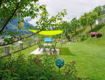 2-værelse-lejlighed 34 m2, lav underetage. Komfortabelt og smagfuld indrettet: indgang. 1 dobbeltværelse. Stue/spisestue med panoramavindue med 1 dobbelt sovesofa og sat-TV (fladskærms TV), radio. Åbent køkken (2 kogeplader, elektrisk kaffemaskine, kombi-ovn) med spisebord. Brus/WC. Gulvvarme. Terrasse overdækket. Havemøbler, grill. Herlige panoramaudsigt over bjergene og landskabet. Til benyttelse: hårtørrer. Internet (trådløs LAN [WLAN], gratis). Parkeringsplads (overdækket). Bemærk venligst: ikke-ryger lejlighed. Brandalarm. Dusj er forfriskende og et brusebad er til stede. Rygning i lejligheden er forbudt. Der er en parkeringsplads. En overdækket parkeringsplads er tilgængelig.- Faciliteter