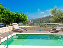 "Murtal", 4-værelse-villa. Komfortabelt og moderne indrettet: stor stue/spisestue med 2 sovesofaer, sat-TV, cd og klimaanlæg. Udgang til pool. 1 dobbeltværelse med 1 dobbeltseng og klimaanlæg. Udgang til terrasse. Store køkken (ovn, 2 keramiske kogeplader). Udgang til have. Særskilt toilet. Overetage: 2 dobbeltværelse, alle værelser med 1 dobbeltseng, brus/WC og klimaanlæg. Udgang til altan. Trægulve. Grill. Herlige panoramaudsigt over havet, svimmingpoolen og landskabet. Til benyttelse: vaskemaskine, tørretumbler, strygejern højstol, barneseng. Velegnet for familier. 1067411 Med indhegnet grund. Overrasket af en storslået udsigt over havet. Der er en barneseng. Huset er også udstyret med en pool. Der er en privat pool.- Faciliteter